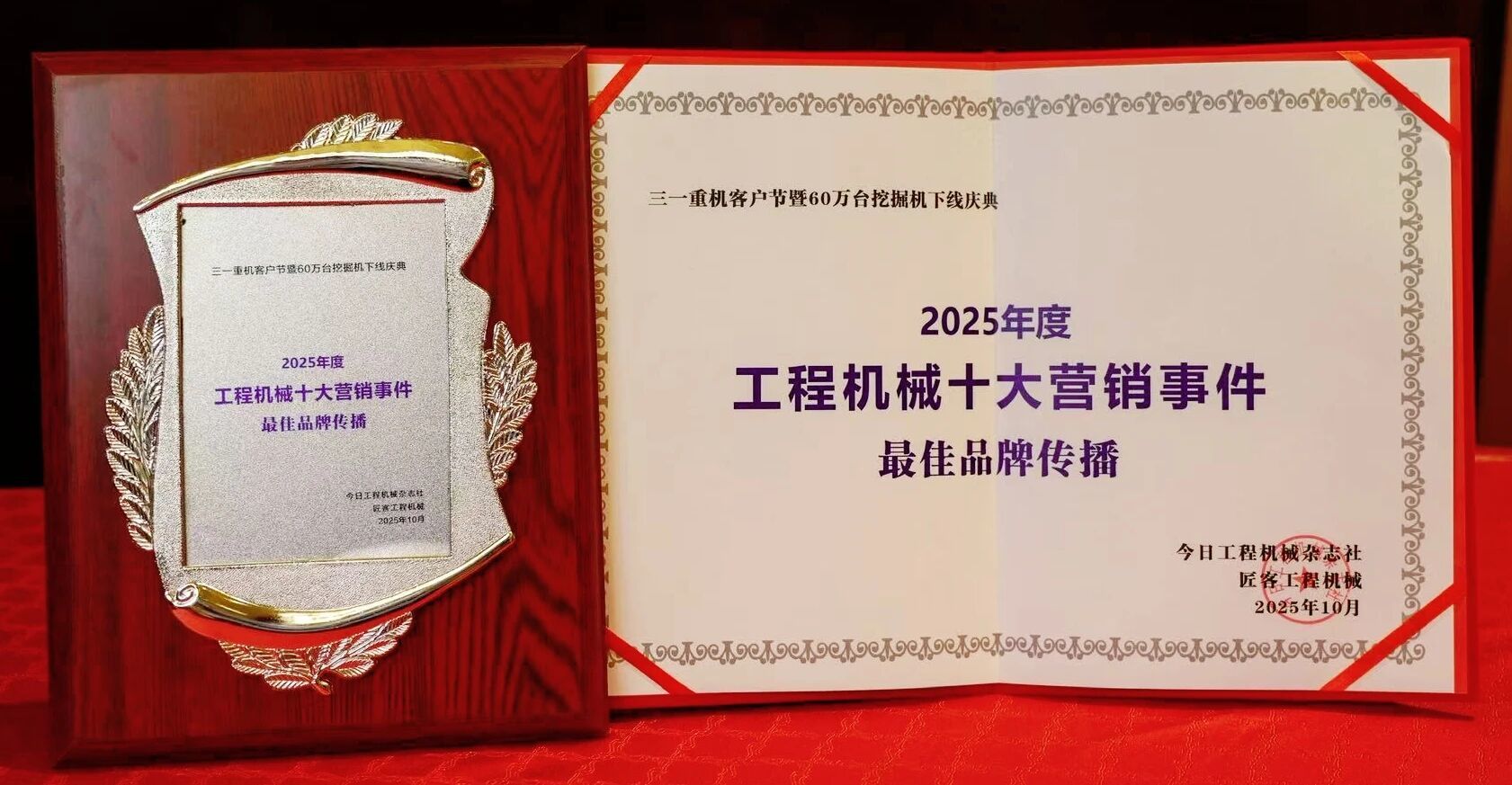 2025年10月22日,“2025年度工程機(jī)械十大營(yíng)銷事件”在江蘇常州重磅發(fā)布。“三一重機(jī)客戶節(jié)暨60萬(wàn)臺(tái)挖掘機(jī)下線慶典”榮登“2025年度工程機(jī)械最佳品牌傳播事件”。